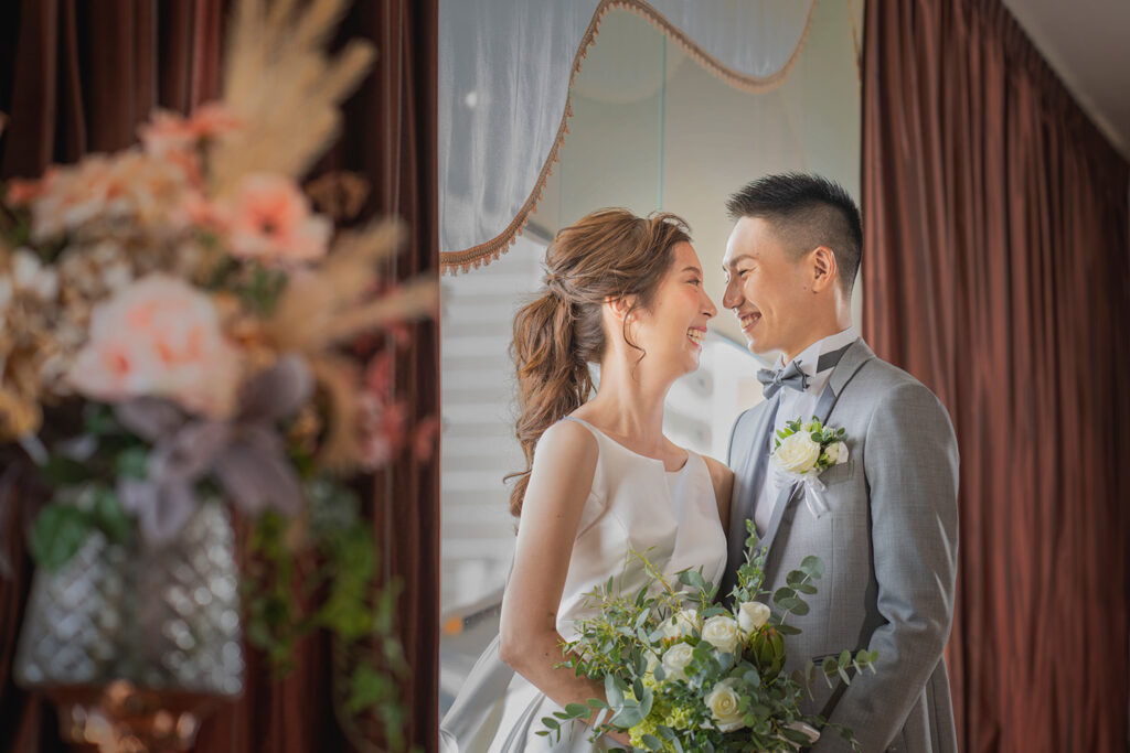 幸せに満ちたお二人の情景を豊かに撮影するために必要なのが高度なライティング技術です。シャッターを押しただけの写真は目に映るものより劣っているとさえ言えます。光と影を読み取り、その場に適したライティングを行うことにより、お二人の魅力はもちろんのこと、衣装の細かなディテールや、計算された背景とのバランスで最高の写真を撮影いたします。