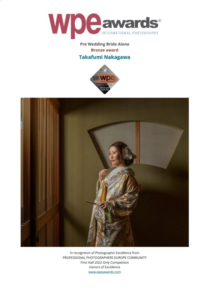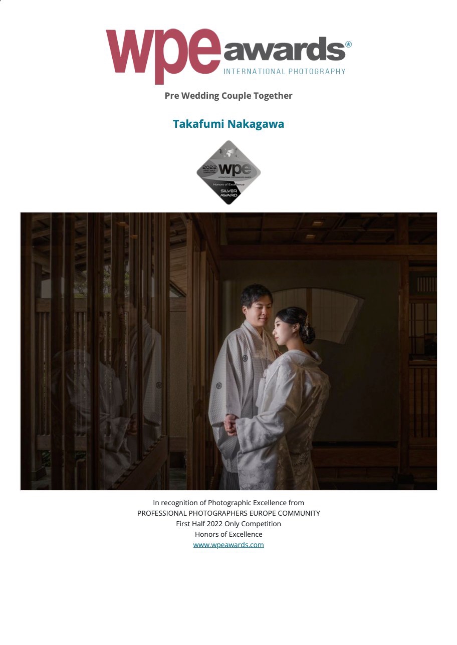 2022年5月に欧州の写真家団体であるWPE(Professional Photographers Europe community)の国際写真アワードの結果が発表されました。
